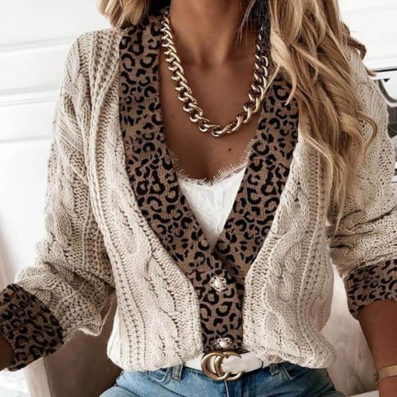 Cozy Glam Leopard Cable Knit Sweater【FREE SHIIPPING】