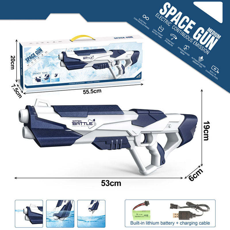 Equipped with a powerful rechargeable battery, the Space Electric Water Gun offers long-lasting performance. A single full charge provides hours of continuous water blasting action, making it perfect for all-day events.