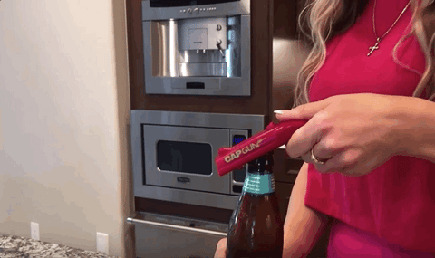 Our Toy Gun Opener bottles and then shoots the cap across the room. Simply pull the slide back, open your bottle, and pull the trigger to fire. You'll never open bottle normally again!