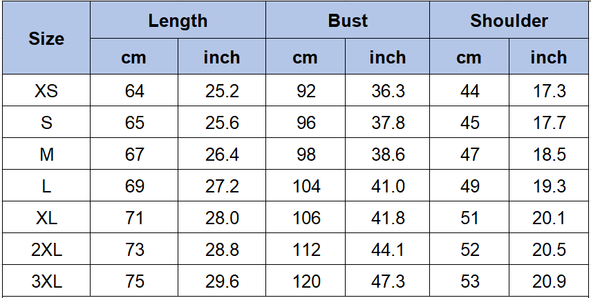 - Size: XS~3XL