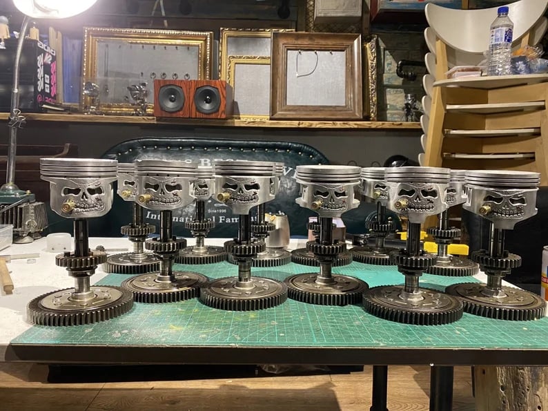 Handcrafted piston skull sculptures, each one unique. Would make a perfect keepsake and collector's item.