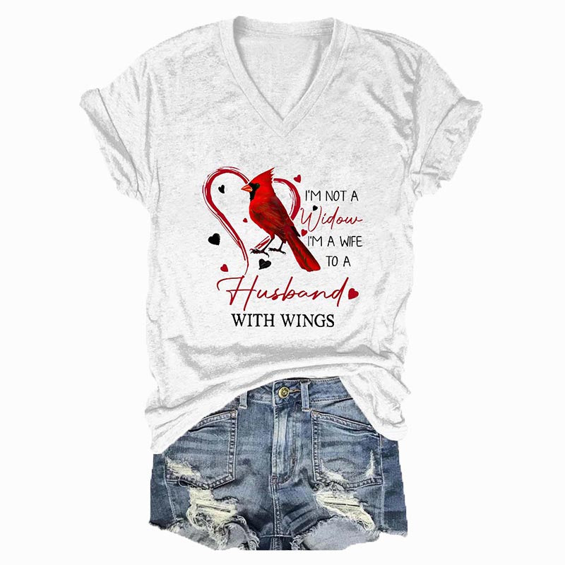 I'm Not A Widow, I'm A Wife To A Husband With Wings V Neck T-shirts