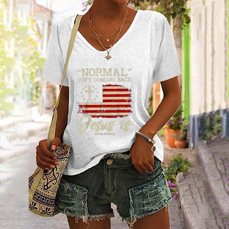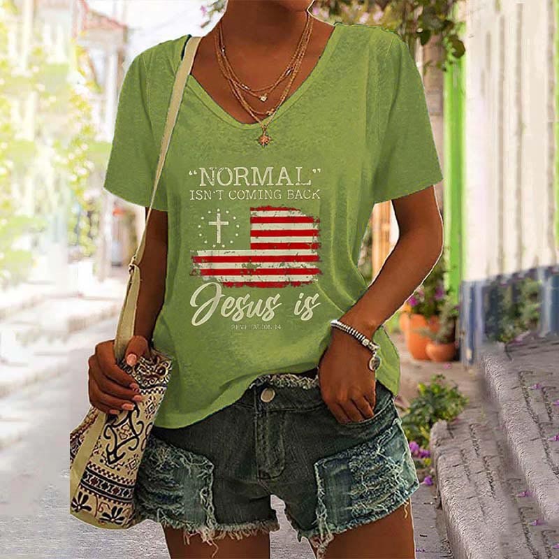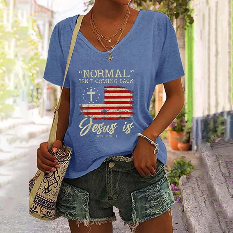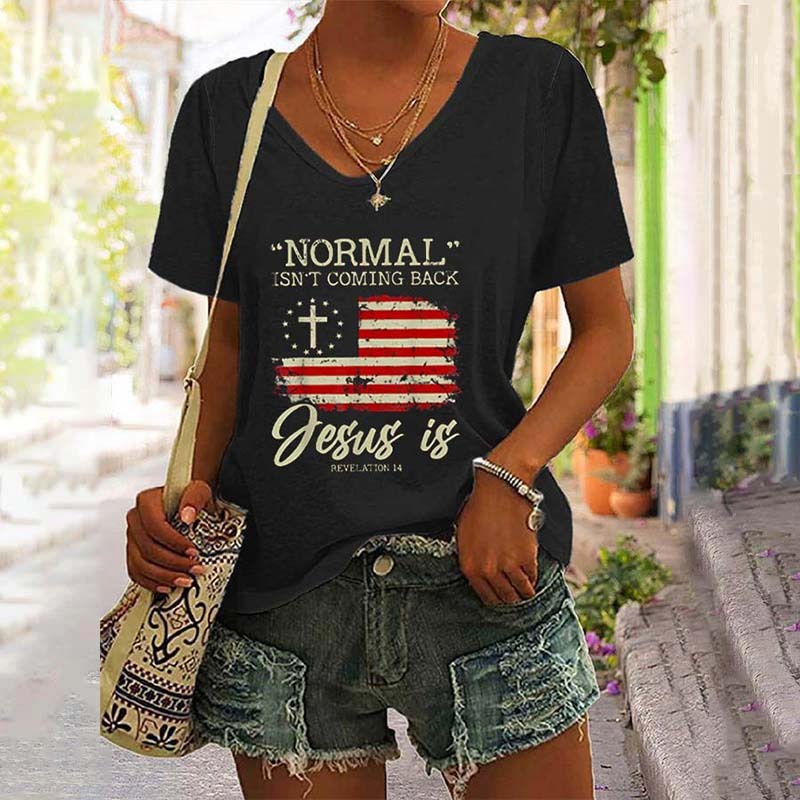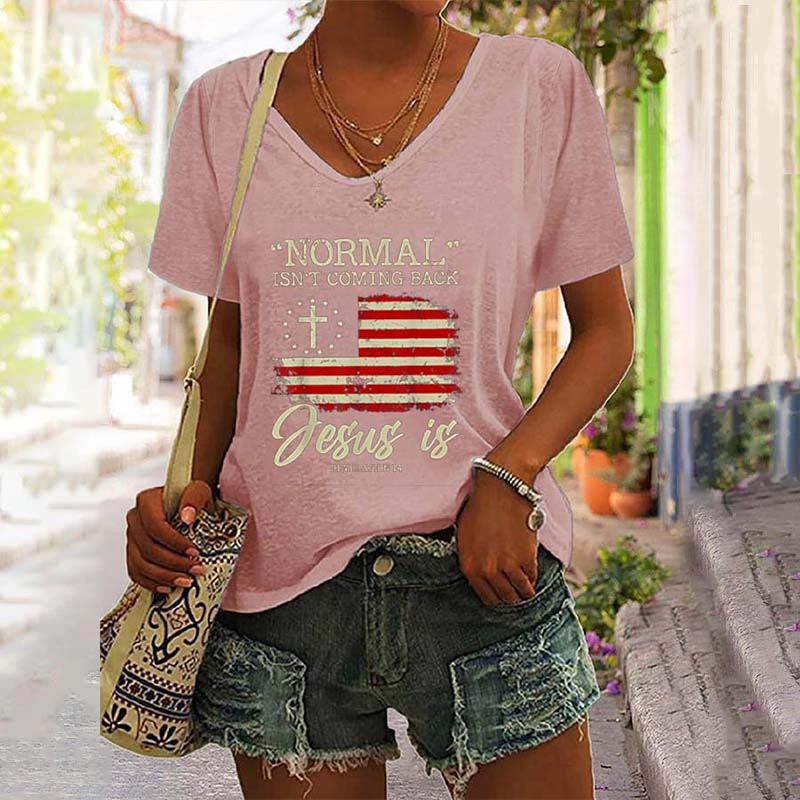 Normal Isn't Coming Back Jesus is Revelation 14 V-Neck Tee