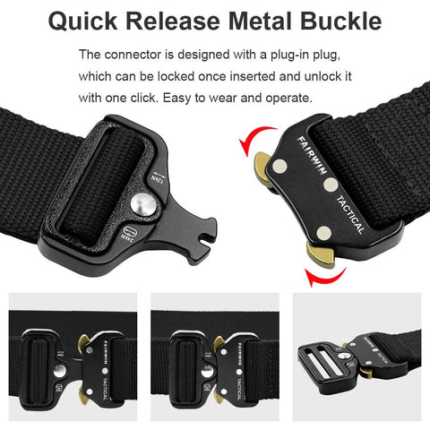 Tactical belt size up to 45 - 61. Great for Hiking, Casual, Law enforcement, Light combat, gun carry and Utility uses as well. Belt comes with removable buckles.