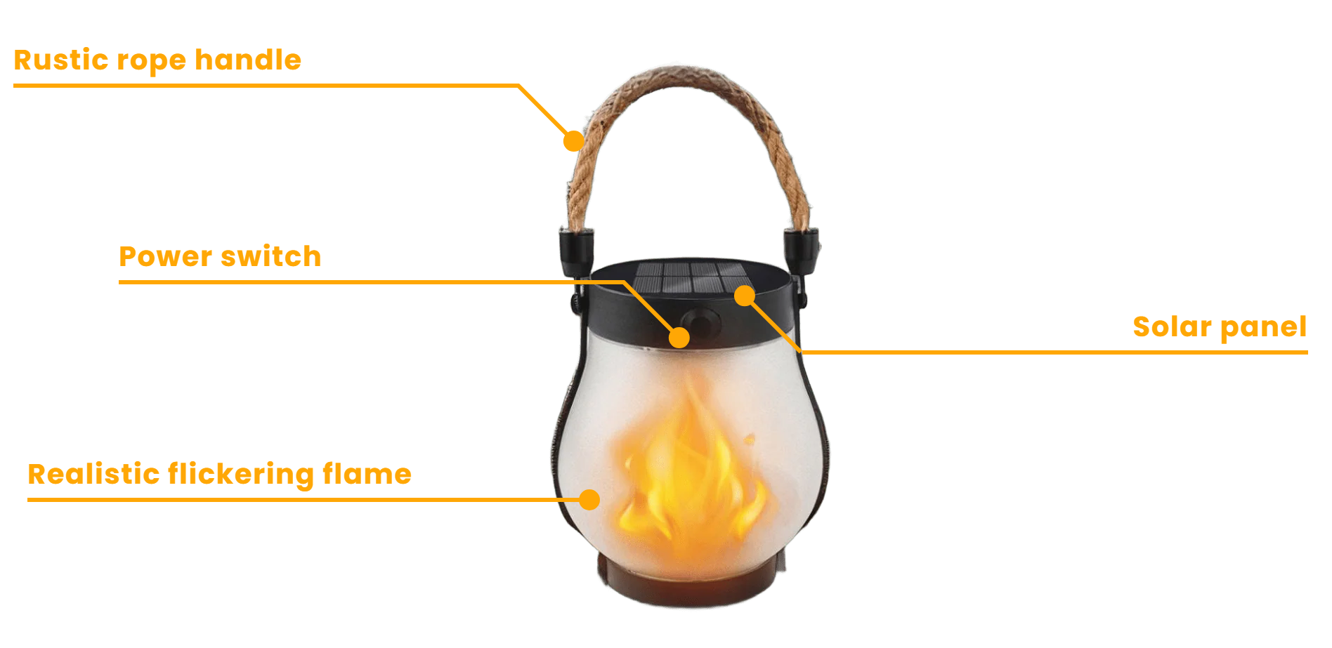 charge all day with the sun and enjoy hours of warm, flickering light