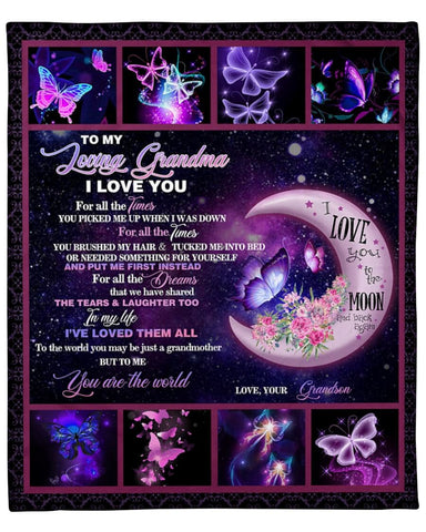 To My Grandma - From Grandson - Butterfly A316 - Premium Blanket