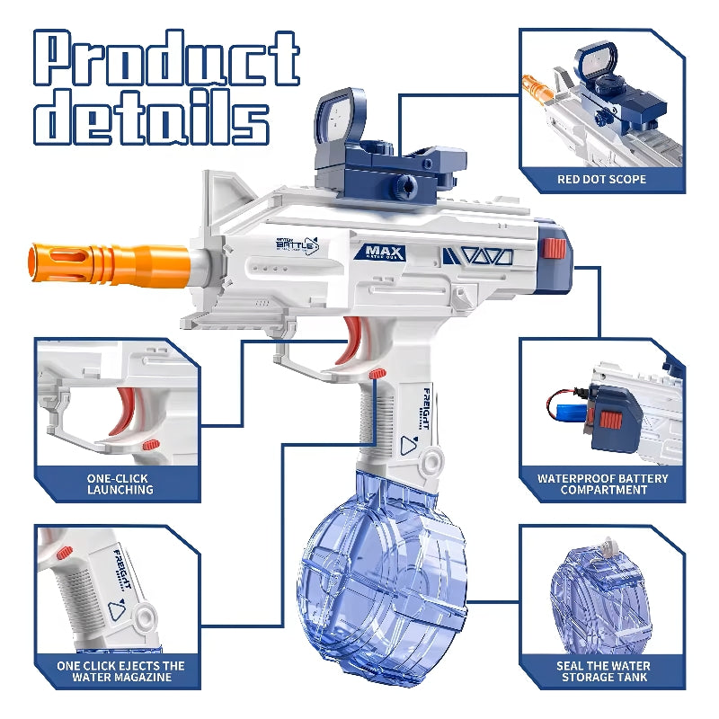 Whether it's a family gathering or a party with friends, bring the Uzi electric water gun, start a fierce water fight, and become the focus of the party.